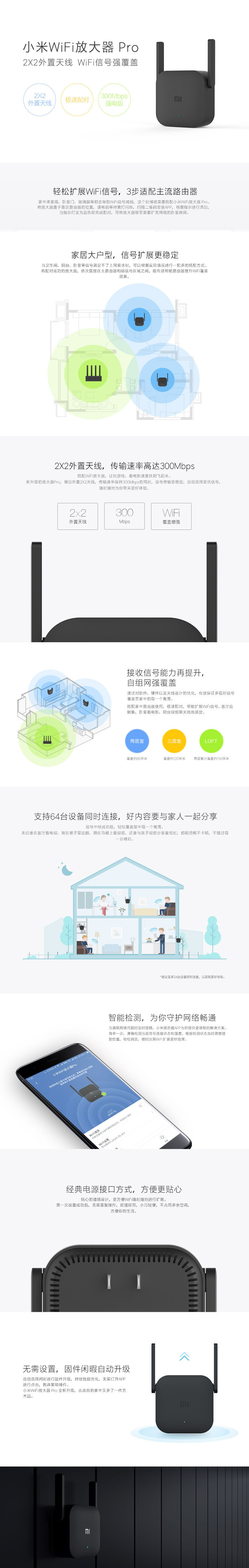 小米(MI)wifi放大器pro wifi信号增强器 300M无线速率 无线信号增强器 强电版 非路由器 需配合路由器使用