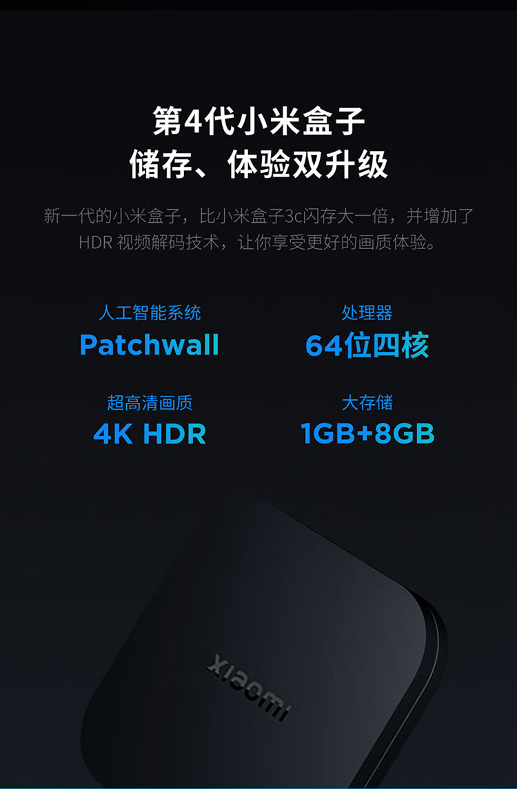 小米盒子4C 智能电视网络机顶盒 H.265硬解 安卓网络盒子 高清网络播放器 HDR 手机无线投屏 黑色